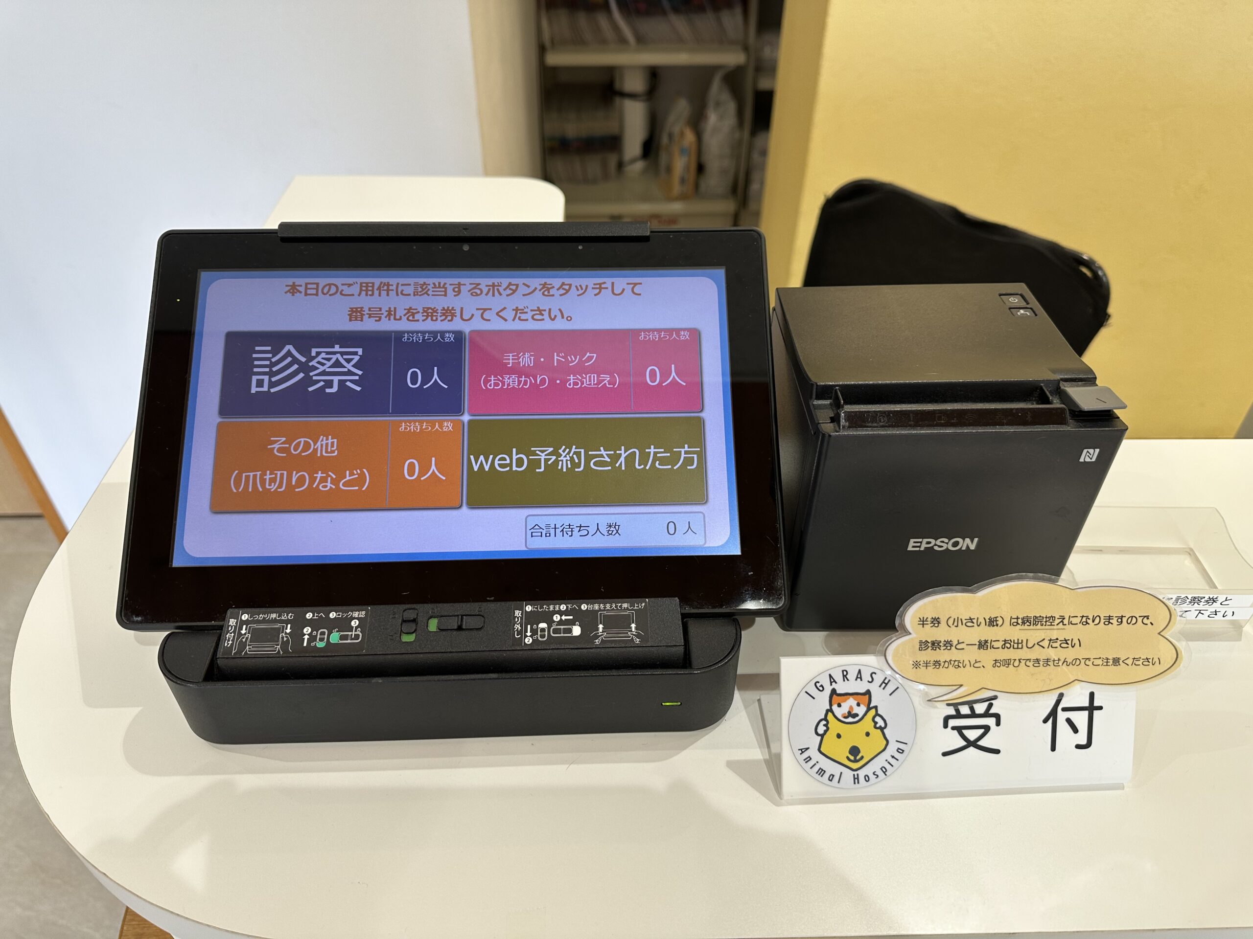 Web受付をされている場合も、ご来院されましたら必ず受付にて診察券のご提示と受付機での順番札の発券をお願いいたします。